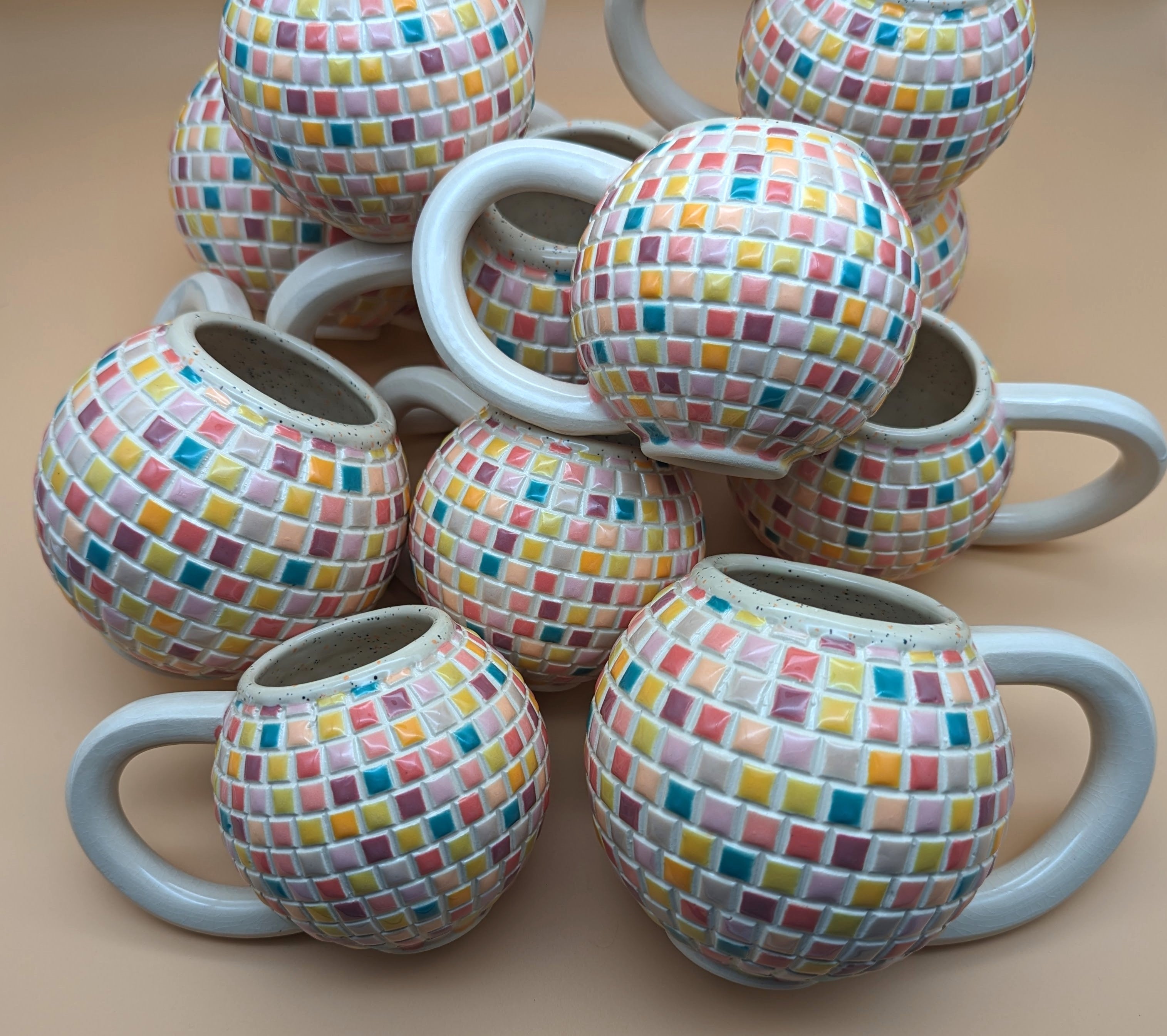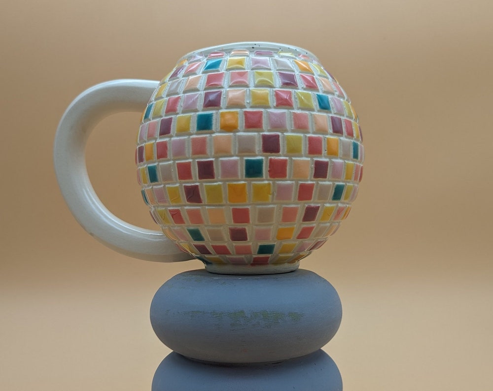 XL Handmade Disco Ball Mug: Pinks and Yellows